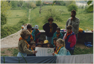 Cerimonia di passaggio di unità del gruppo Scout a Bigorio