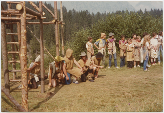 Ragazzi durante una rappresentazione al campo Scout a Campra