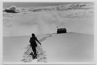 Sciatore in ascesa verso la vetta del Monte Bar