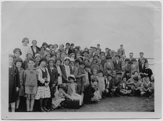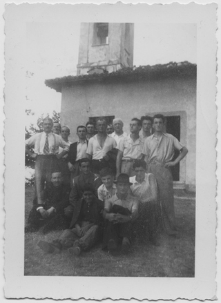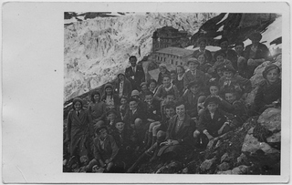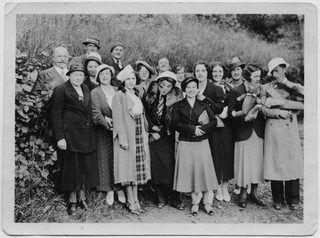 Dipendenti e superiori della fabbrica di pietrine per orologi di Sala Capriasca in gita