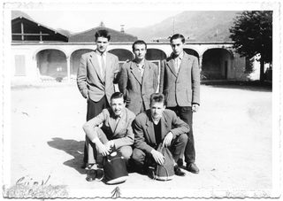 Gruppo in posa sopra a una roccia al Pian Sótt
