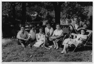 Gruppo in posa sopra a un prato sui monti di Brena