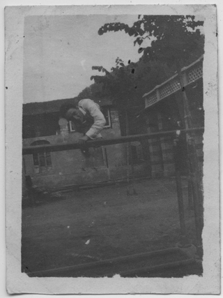 Ritratto di Romeo Cattaneo ginnasta alla parallela