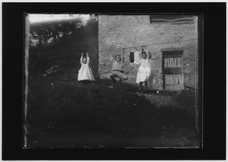 Ritratto di due donne sull'uscio di una cascina ai Monti di Brena a Gola di Lago