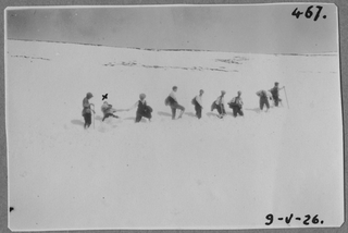 Ritratto di gruppo in gita sul ghiacciaio dell'Adula