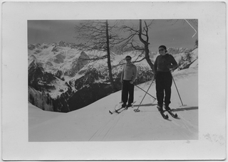 Mauro Mini e Gastone Besomi mentre giocano a hockey sul lago di Cess a Gola di Lago