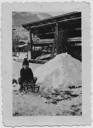 Mary Storni mentre costruisce un pupazzo di neve a Signôra