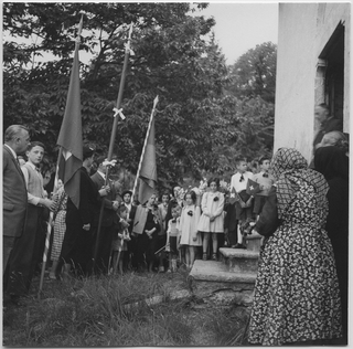 Altare allestito all'esterno durante la celebrazione del Corpus Domini a Tesserete
