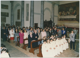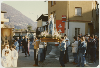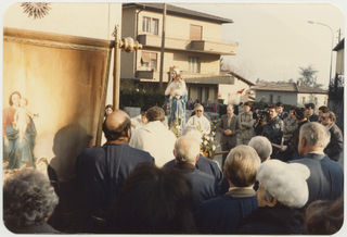 Gruppo di fedeli riuniti dopo una funzione religiosa a Ponte Capriasca
