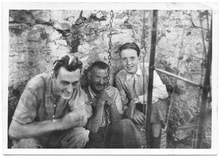 Edy Menghetti, Dante Storni e Giovanni Ferrari sul campanile della chiesa di Sala per la Madonna del Carmelo