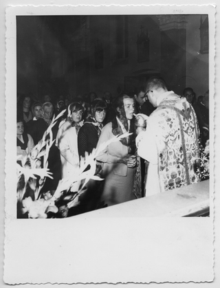 Comunione durante la messa per il 50º della chiesa di Sant'Antonio da Padova