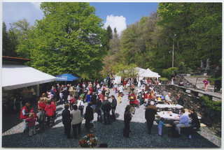 Persone riunite nella piazza del Convento di Bigorio in occasione della festa dell'Ascensione