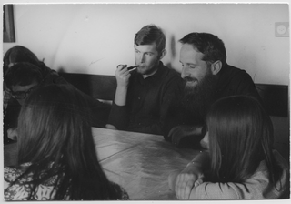 Gruppo di frati con dei ragazzi
