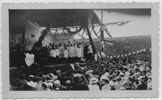 Funzione sul palco al Convento di Bigorio in occasione della festa per il V Centenario del Convento