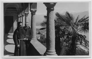 Ritratto di due frati sotto i portici della Basilica della Madonna del Sasso