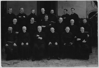 Ritratto di ecclesiastici in posa davanti al Convento di Bigorio