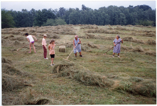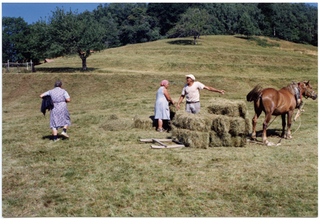 Ritratto di due donne che raccolgono il fieno ai Monti Piani