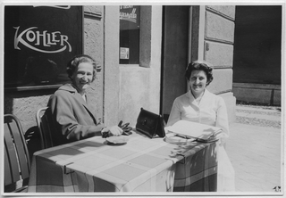 Valeria Canonica (a destra) con un'amica al tavolino di un bar