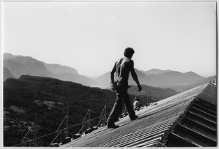 Operaio sul tetto del Convento di Bigorio