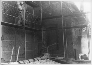 Operai al lavoro nel restauro del Convento di Bigorio