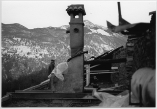 Trasporto di materiale sul tetto del Convento di Bigorio