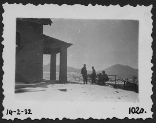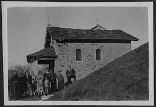 Gruppo di persone davanti alla Cappella del Sacro Cuore a Condra