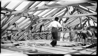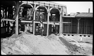 Operai sul cantiere per l'edificazione del lido di Lugano