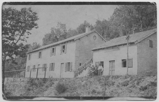 Ritratto di gruppo davanti al rifugio Primavesi a Condra