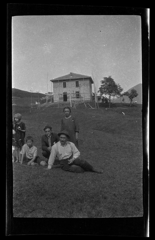 Gruppo a Condra con sullo sfondo i lavori di costruzione di casa Bianchi
