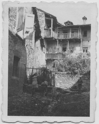 Bambini in cortile di Ca dra Pesciòra a Comano