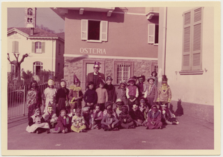 Alunni di prima e seconda elementare in posa durante il carnevale di Comano