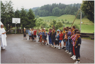 Momento del giuramento Scout al campo estivo a (?)