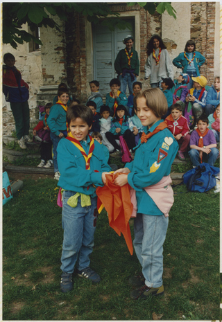 Cerimonia di passaggio di unità del gruppo Scout a Bigorio