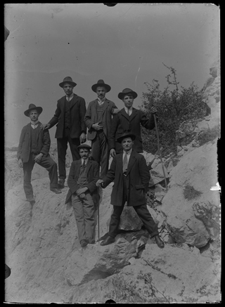 Uomini in posa sopra ad una roccia