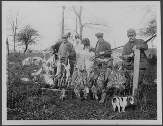 Cacciatori in posa con le prede