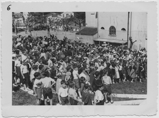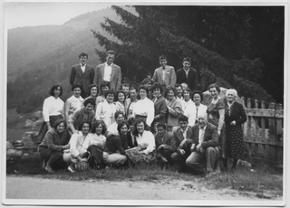 Dipendenti e superiori della fabbrica di pietrine per orologi di Sala Capriasca in gita