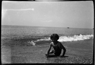 Ritratto di Sylva Besomi in riva al mare