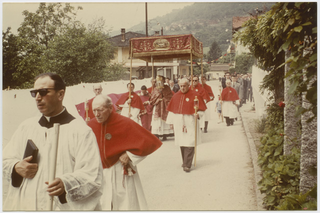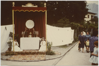Altare allestito all'esterno durante la celebrazione del Corpus Domini a Tesserete