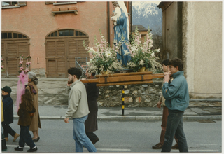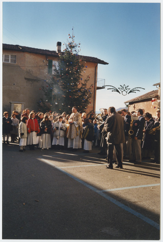 Gruppo di fedeli riuniti dopo una funzione religiosa a Ponte Capriasca