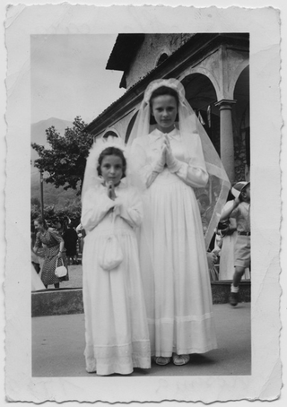 Bambine in occasione della Prima Comunione davanti alla chiesa di Santo Stefano a Tesserete