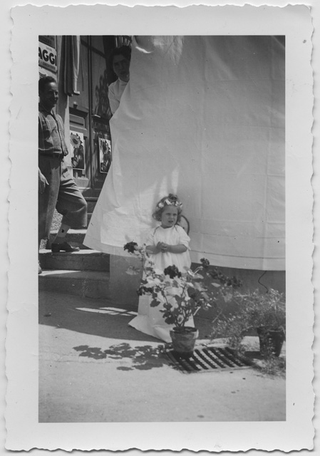 Mauro Mini vestito da angioletto in occasione della processione del Corpus Domini a Tesserete