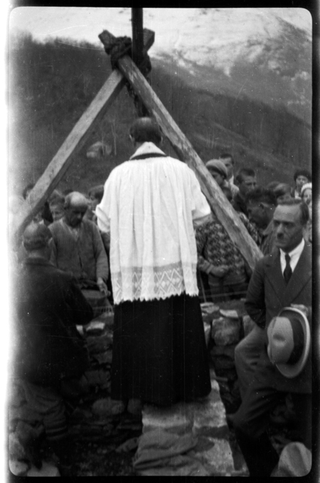 Benedizione del cantiere per la costruzione della chiesa di Maria SS Ausiliatrice a Gola di Lago