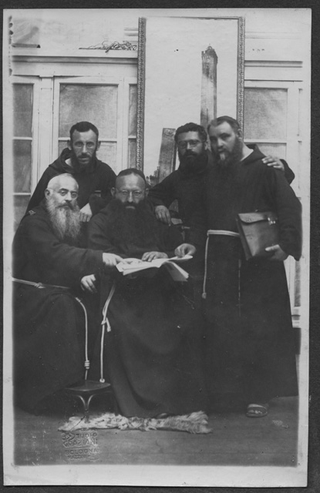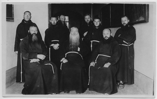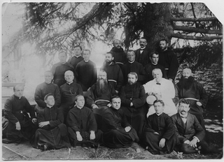 Ritratto di ecclesiastici in posa davanti al Convento di Bigorio