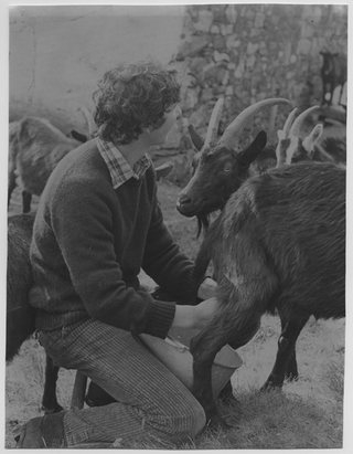 Daniele Rovelli mentre munge una capra ai monti di Fornèra