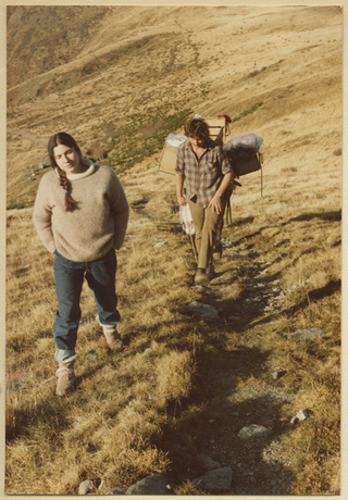 Brigit e Daniele Rovelli a Piandanazzo mentre trasportano a valle il formaggio dell'alpe