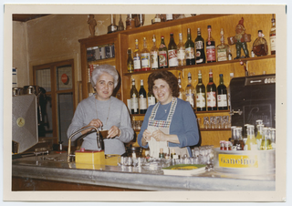 Enrica Riva e Carmen Mini-Riva al bancone del ristorante Riva