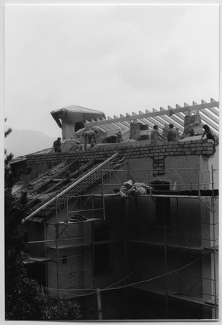 Operai al lavoro nel restauro del Convento di Bigorio