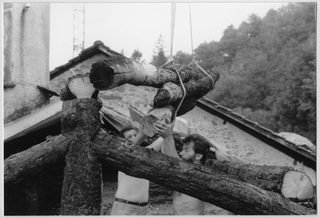 Trasporto di materiale sul tetto del Convento di Bigorio