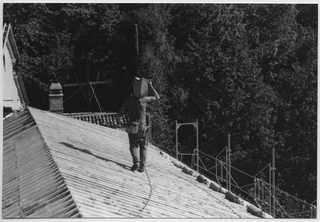 Operaio sul tetto del Convento di Bigorio