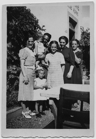 Sorelle Colombo in posa davanti al ristorante Club Alpino